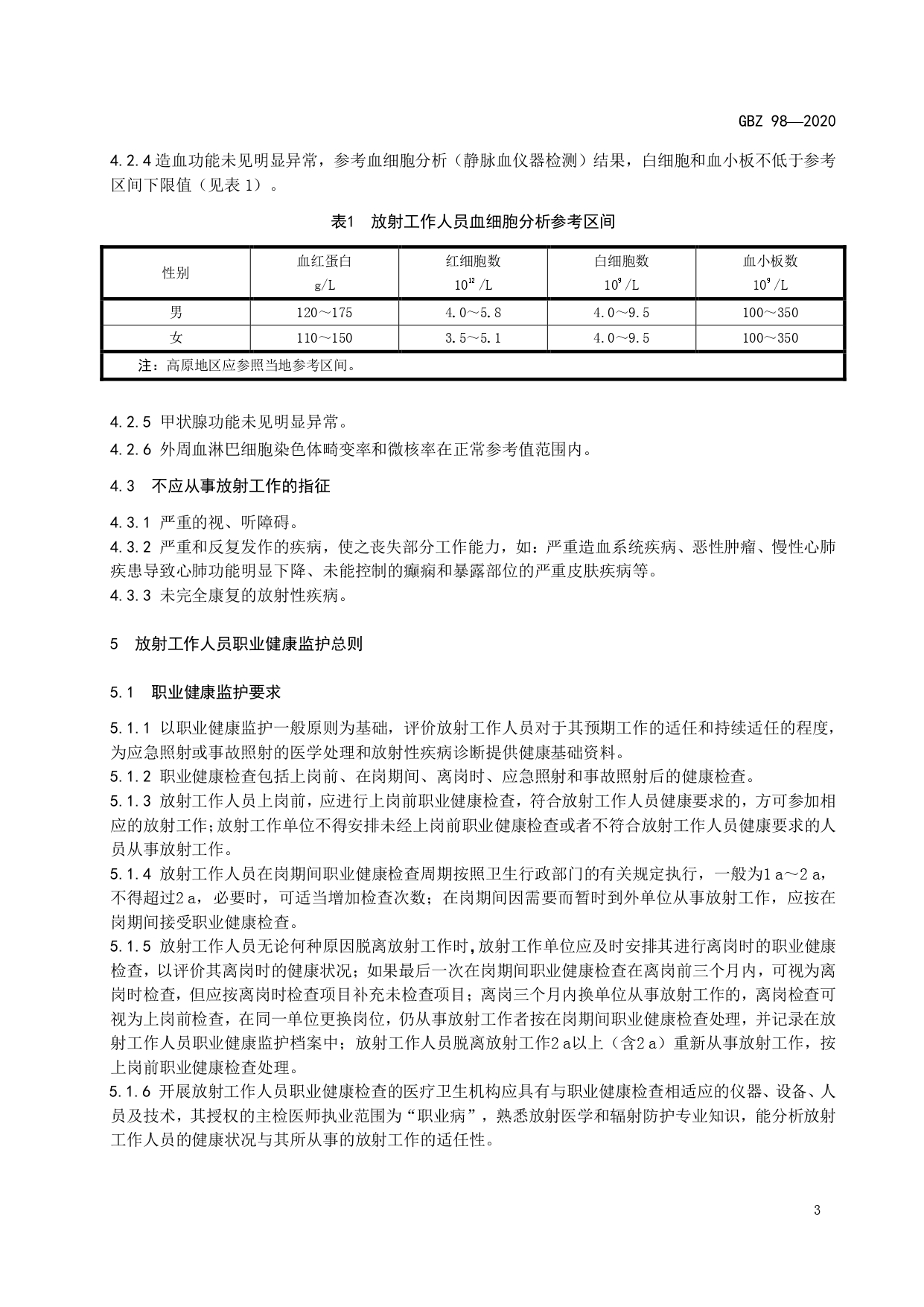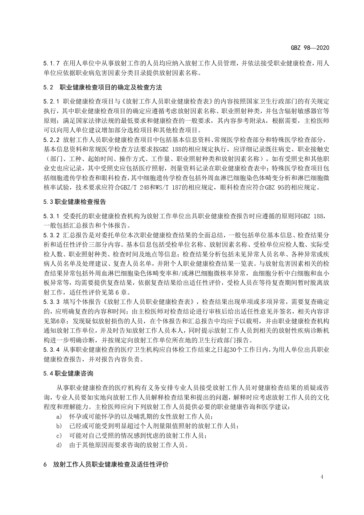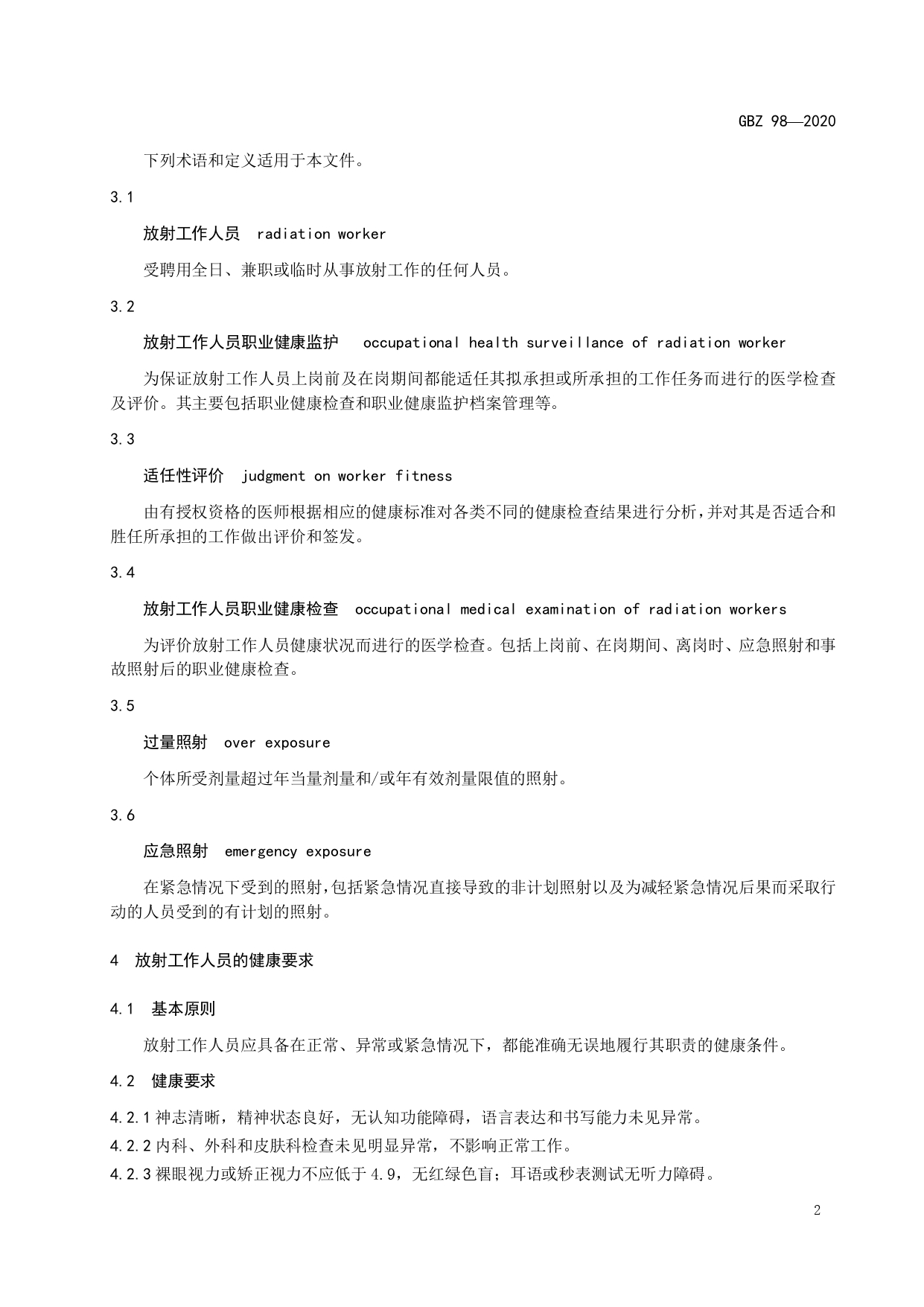 放射工作人员健康要求及监护规范GBZ98-2020
