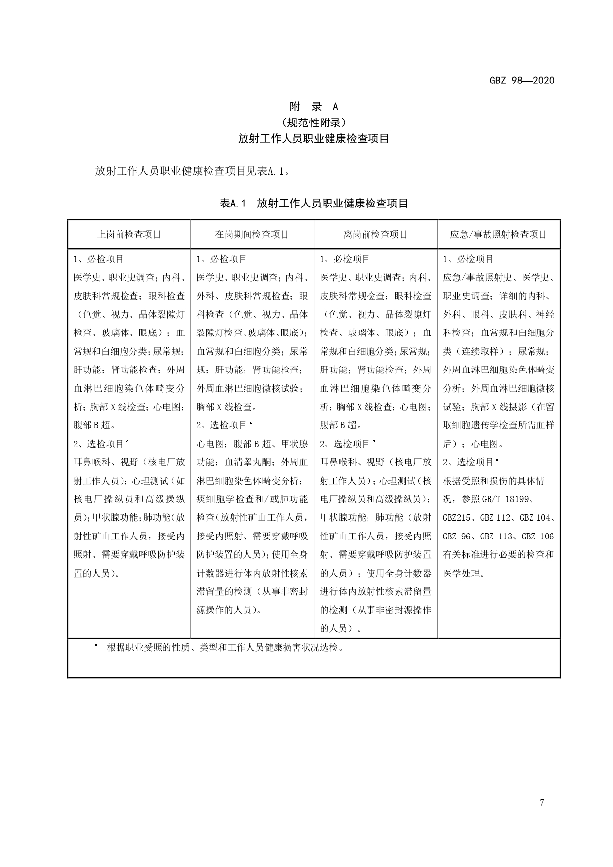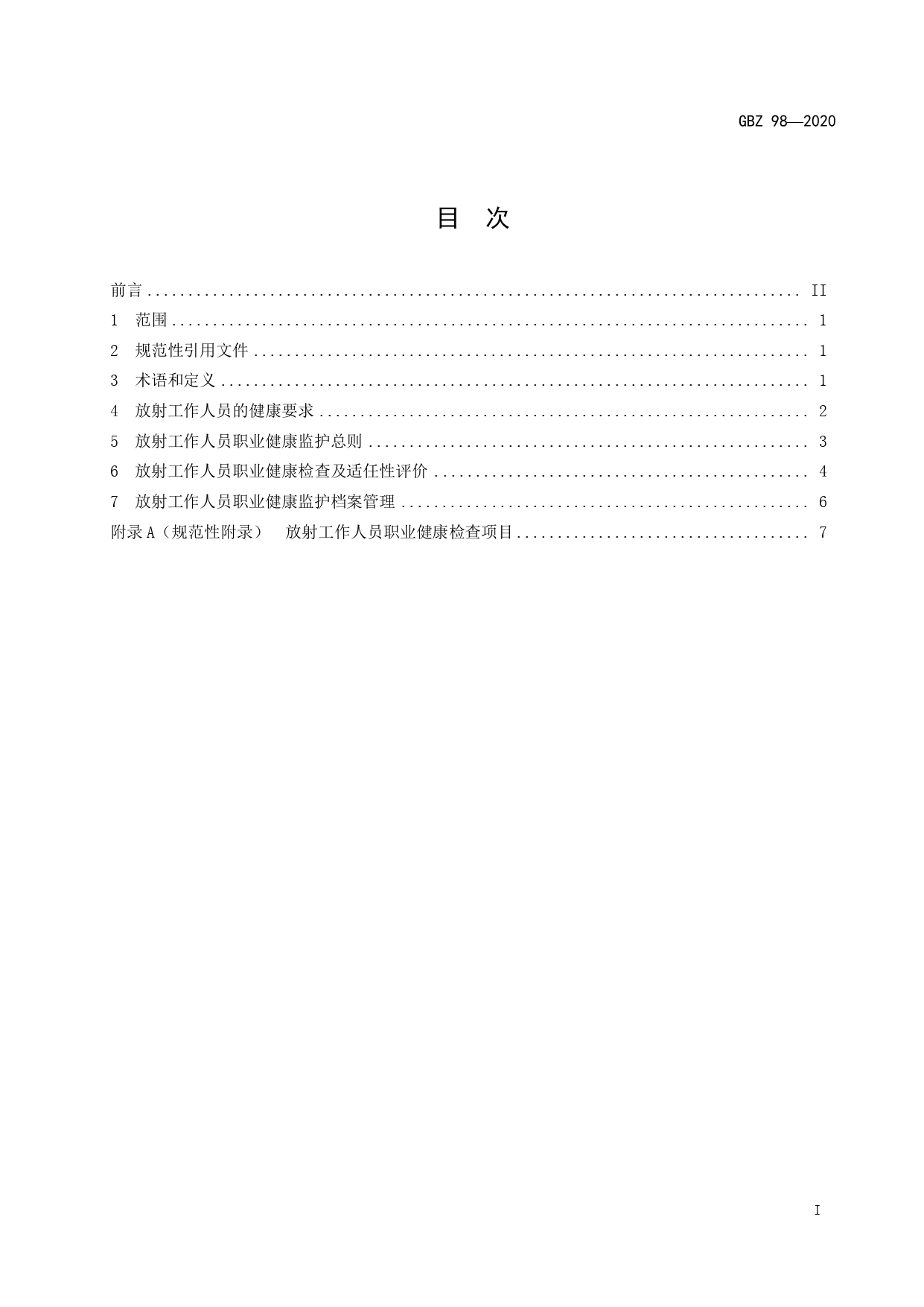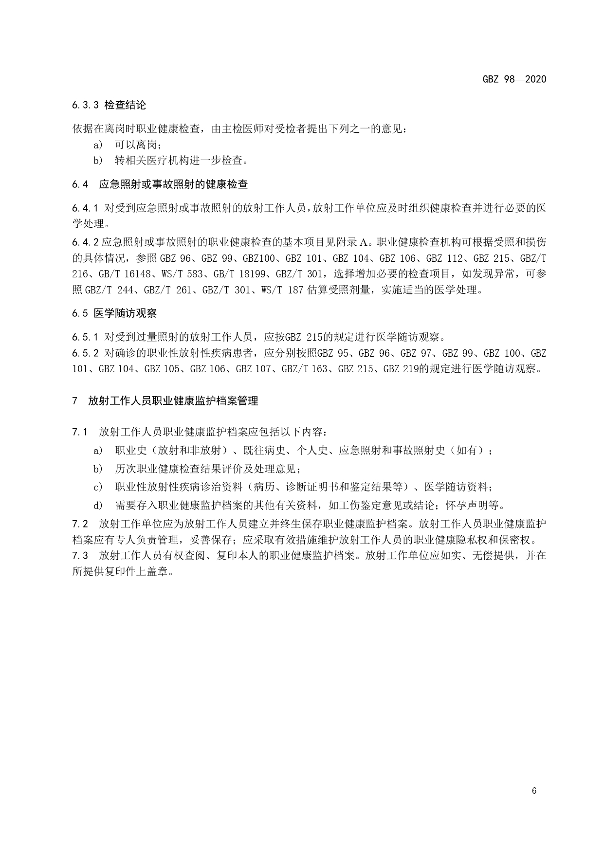 放射工作人员健康要求及监护规范GBZ98-2020