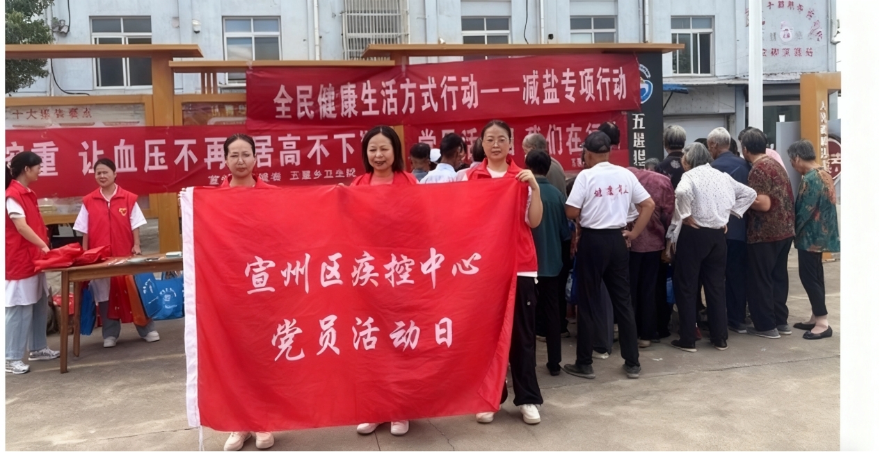 为深入践行“健康中国 2030”战略部署,扎实推进全民健康生活方式行动,近日,宣城市宣州区疾控中心组织党员干部赴五星乡沟村开展“全民健康生活方式行动——减盐专项行动”主题党日活动。党员志愿者们以“党建+健康服务”,将科学减盐知识送到田间地头、农家院落,用实际行动诠释共产党员的初心使命。