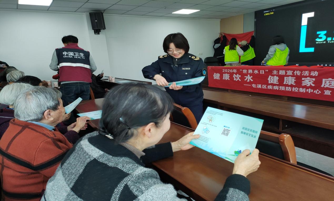 3月22日至28日是第三十九届中国水周。3月25日,黄山市屯溪区疾病预防控制中心(卫生监督所)组织执法人员走进洽阳社区,开展以“健康饮水,健康家庭”为主题的宣传教育活动,将饮水安全知识送到群众身边,营造“人人关注饮水健康、家家践行科学饮水”的良好氛围。