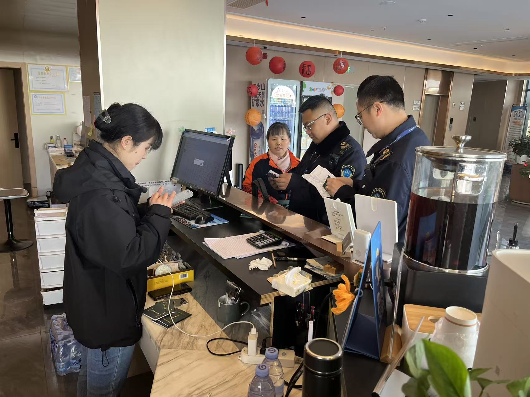 此次检查以保障旅客健康安全为核心,督查人员重点围绕住宿场所《公共场所卫生许可证》持证及公示情况、从业人员健康合格证明是否有效、清洗消毒保洁设施是否规范配置、公共用品用具是否严格落实“一客一换一消毒”制度、是否存在重复使用一次性用品用具等内容,通过现场查看、询问、查阅记录等方式,对卫生管理关键环节进行了细致排查。
