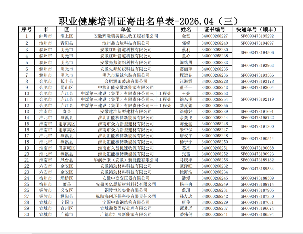 职业健康培训证寄出名单表-2026.04(三)
