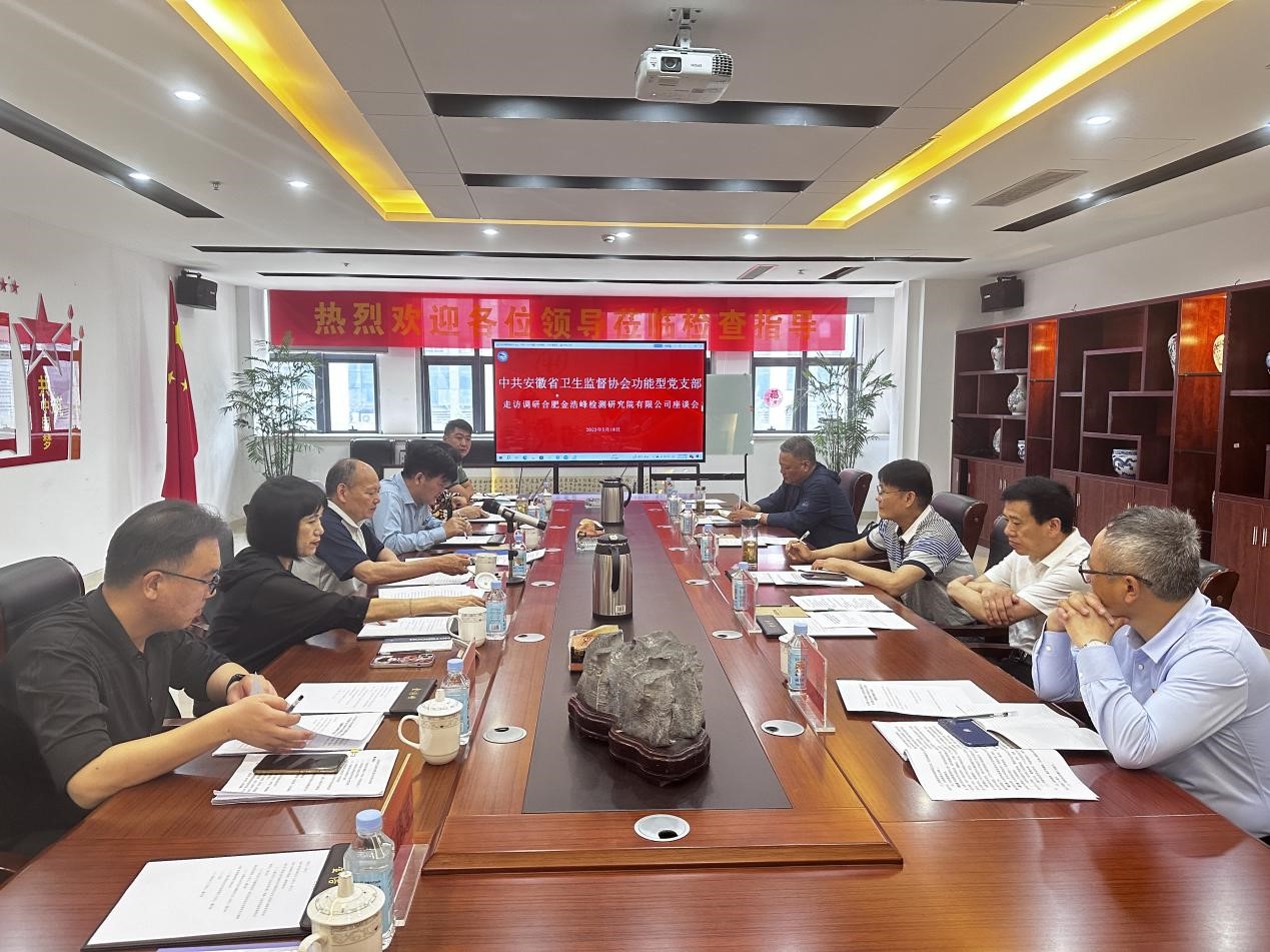 日前,由协会党支部支委会委员和部分党员理事组成的走访调研组走访调研了协会常务理事单位-合肥金浩峰检测研究院有限公司,合肥金浩峰公司李大飞、王伟宝等公司领导陪同调研。