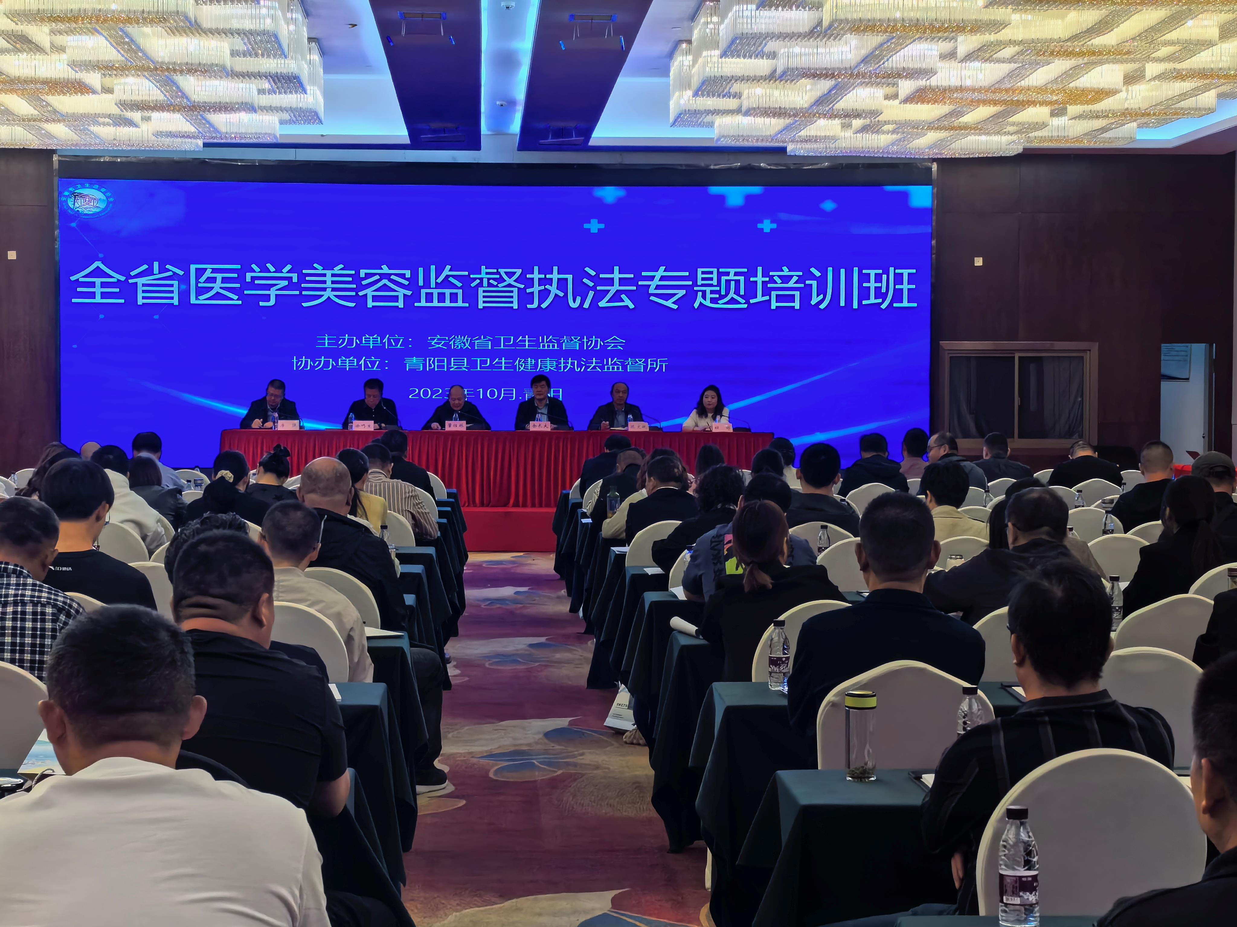 全省医学美容监督执法专题培训班日前在青阳县举办。来自全省卫生监督机构、部分县区卫生健康委、卫生监督协管服务机构的相关人员近200人参加了培训。青阳县卫生健康委党组书记、主任陈文斌,青阳县卫生健康监督所所长房强,协会董仕林、余长大、徐巧生、杜婷等有关领导出席开班式。