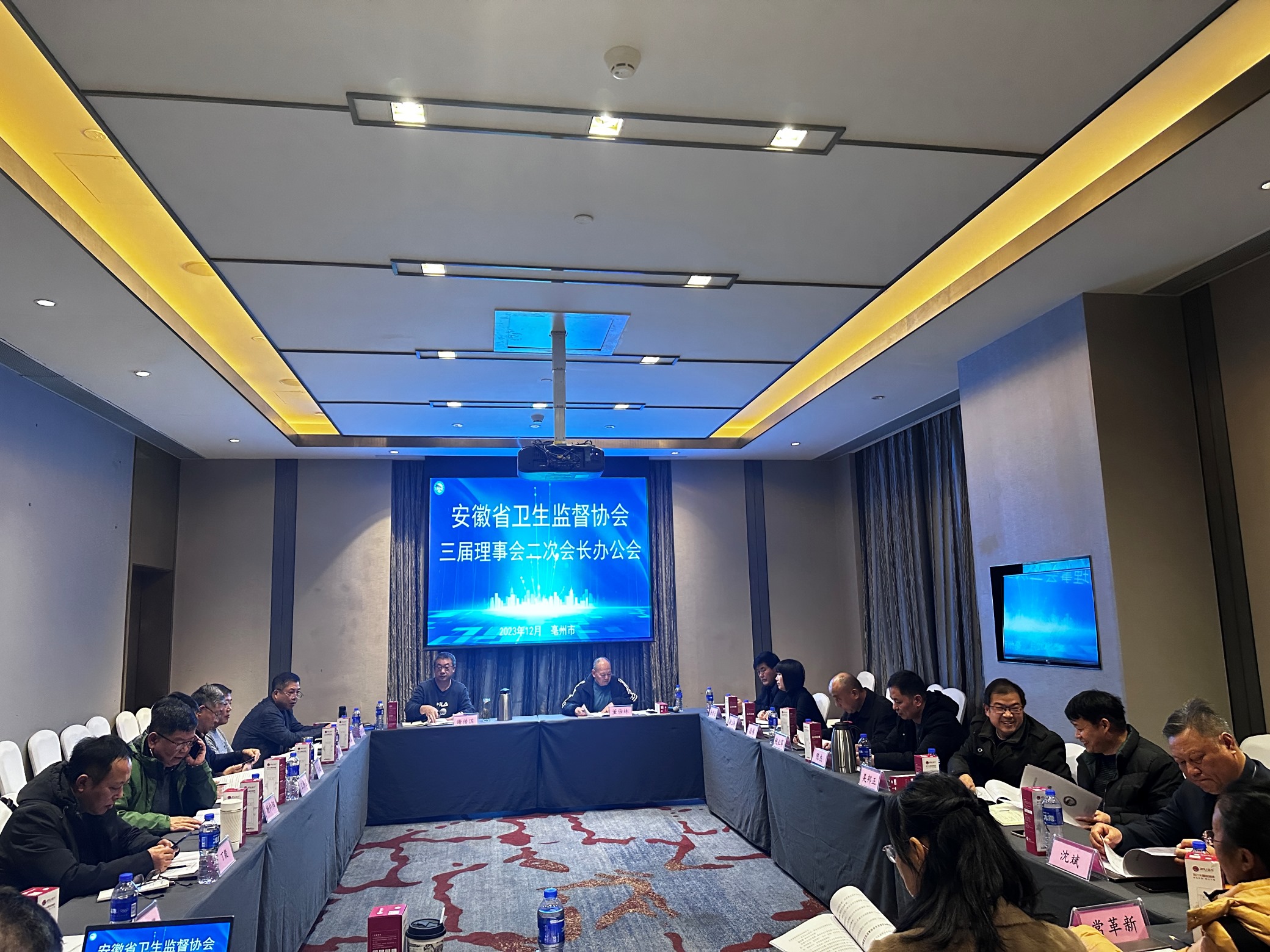 2023年12月6日,安徽省卫生监督协会第三届理事会二次会长办公会在亳州市召开。协会负责人全体人员参加了会议,党支部、监事会成员,专业委员会主任委员及办公室工作人员列席会议。