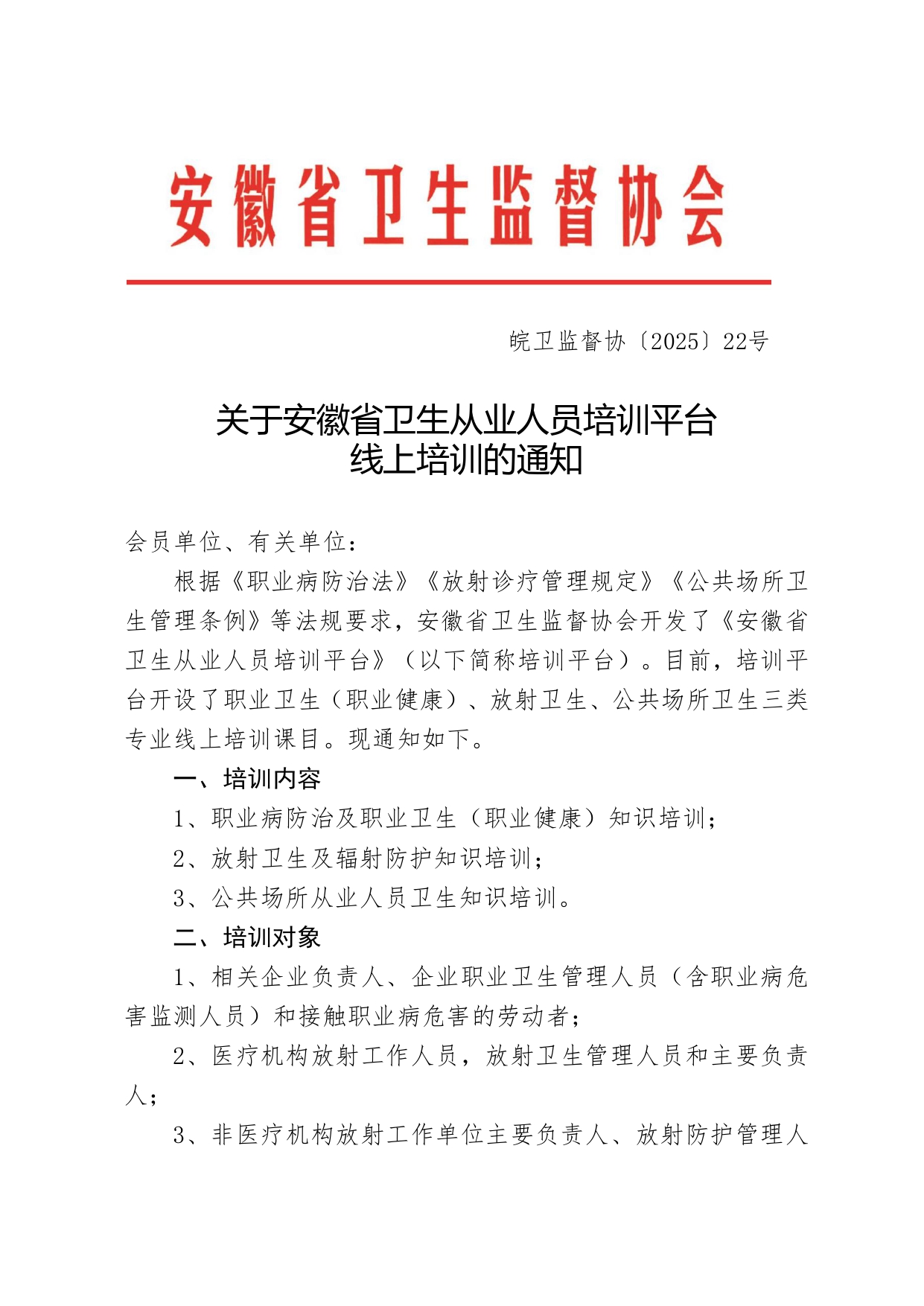 附件一:upload/newsTpl/皖卫监督协〔2025〕22号关于安徽省卫生从业人员培训平台线上培训的通知.pdf