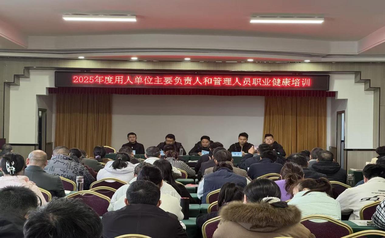 为深入贯彻《中华人民共和国职业病防治法》,落实省、市 2025 年职业健康工作重点任务,近日,宿松县卫健委在孚玉山宾馆成功举办用人单位主要负责人和职业卫生管理人员培训班。全县工贸、建筑、矿山、物流等重点行业的110 余名管理骨干参加培训。