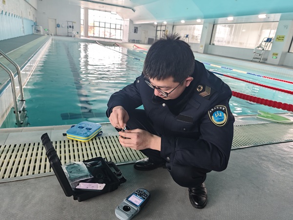 在开展常规监督检查的同时,执法人员利用现场快速检测设备对泳池水质的核心卫生指标进行了即时监测,检测项目主要包括池水的游离性余氯、pH值、浑浊度等。执法人员严格按照操作规程,在泳池的深水区、浅水区等多个代表性点位取样检测,确保数据能真实反映池水卫生状况。通过快速检测,能够及时发现问题苗头,为监督执法提供科学依据,督促场所管理者立即整改。